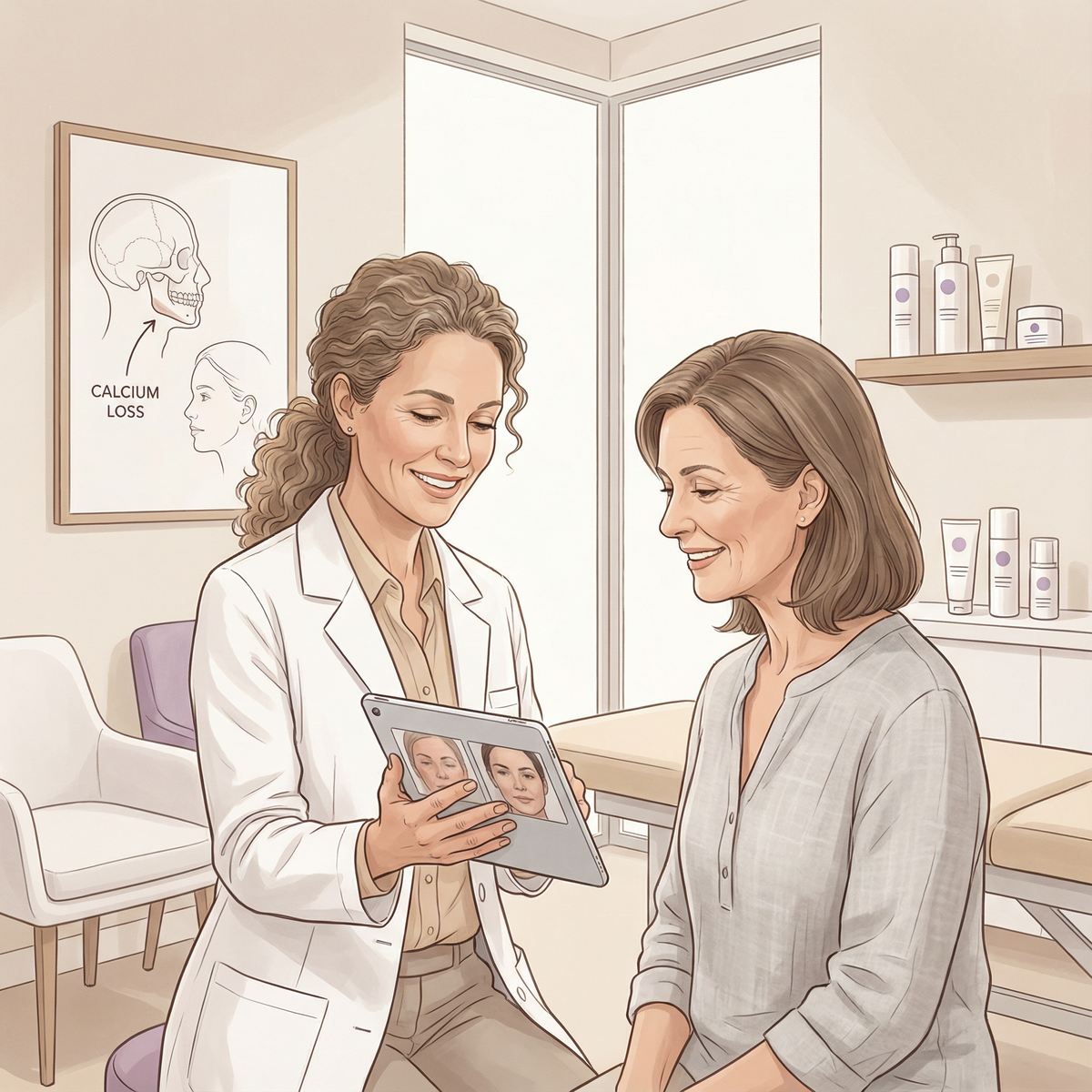 Our founding dermatologist had spent years watching patients pour thousands into creams, serums, and procedures that only worked on the surface. Women would return months later—sometimes after spending $5,000+ on fillers and peels—with the same sagging jawlines, deepening marionette lines, and jowls that looked softer every visit.